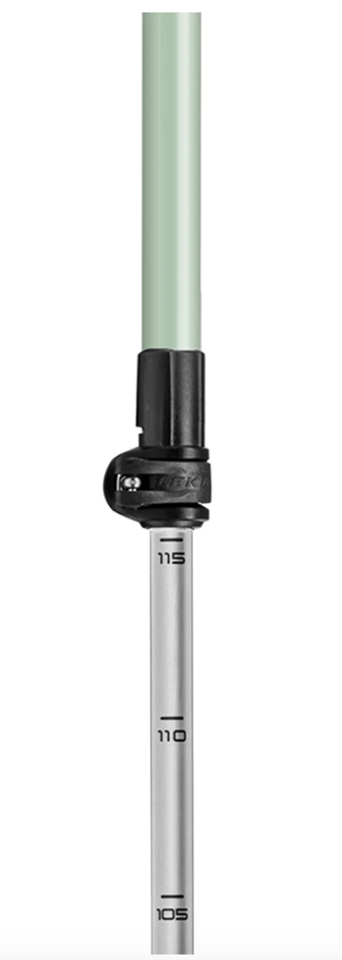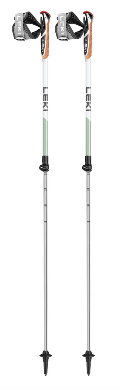 The SPIN SHARK is a durable two-piece Nordic Walking pole made from hardened HTS 5.5 Aluminum that supports you in any terrain. The two-component cork grip, combined with the LEKI Trigger Shark 2.0 grip and a breathable mesh strap, ensures a seamless connection to the pole, providing you with a full-body workout. The LEKI Nordic Walking Poles strap can be removed from the grip in an instant with the push of a button. Thanks to the Speed LockPlus locking system, these LEKI walking poles are effortlessly adjustable between 100-130 cm, allowing you to customize them to your preferred length. The SPIN SHARK comes with a carbide tip for natural environments and a rubber tip for use in urban/indoor environments, making them versatile for various walking conditions.